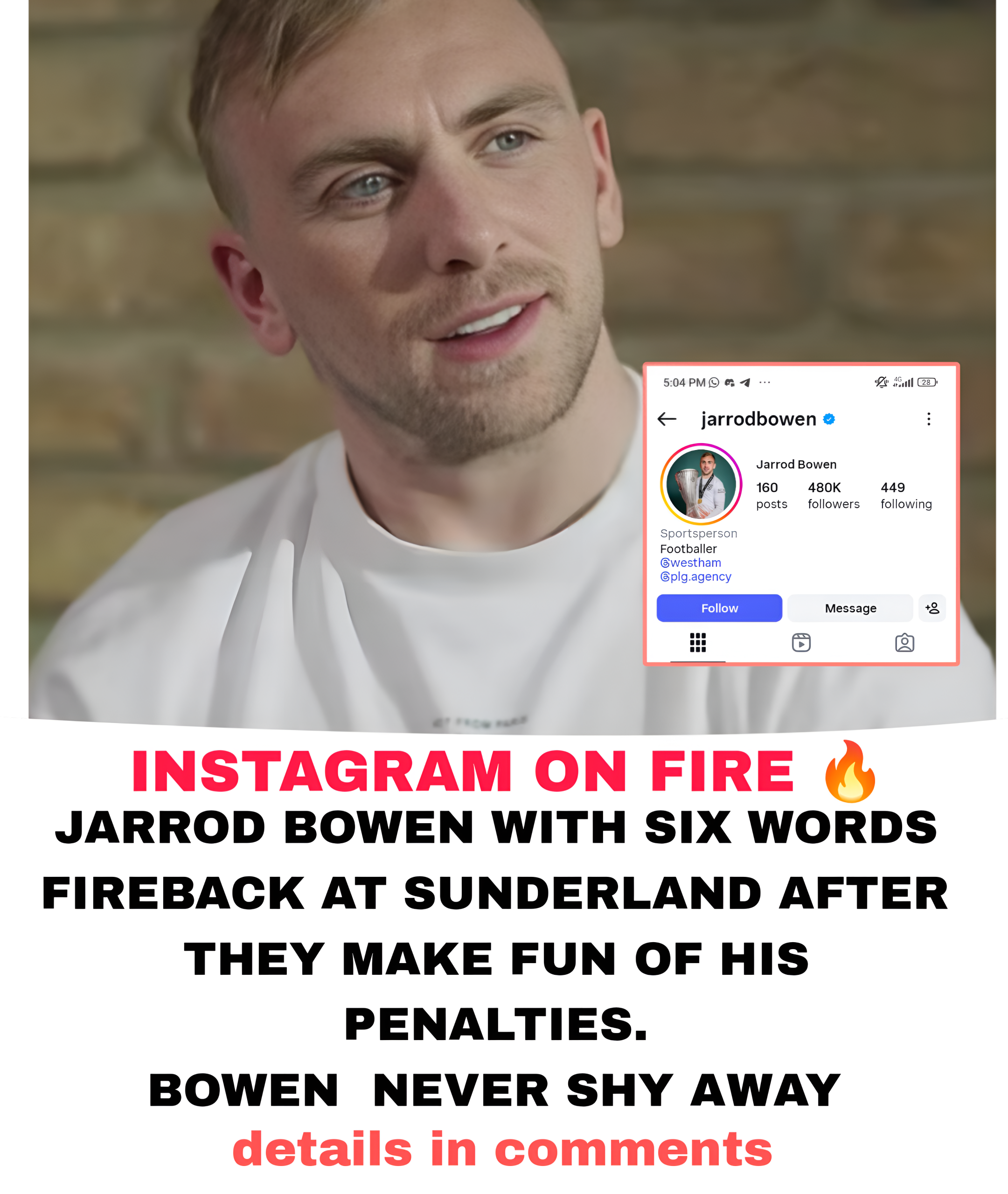 This isn’t the first time Bowen has shown he’s never shy away from confrontation. Whether it’s on the pitch or online, the England international consistently lets his football — and his confidence — do the talking. No excuses. No hiding. Just belief.